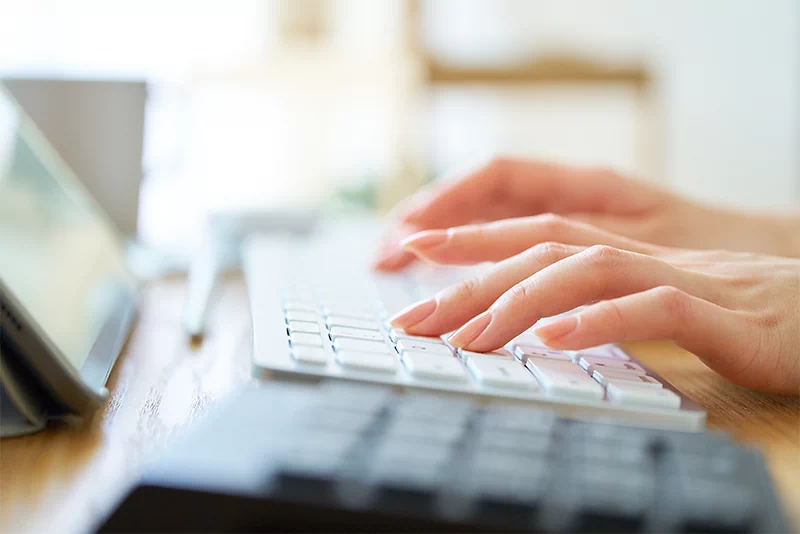 手首の角度を自然に保てるキーボードは肩や腕への負担を軽減してくれるほか、キーの高さや傾斜なども打ちやすさに直結し、長時間作業における負担軽減に大きな役割を果たします。